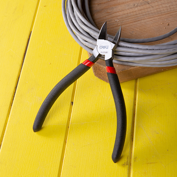 得力斜嘴偏口小口水剪線水DL0306口鉗(紅)電工工具,