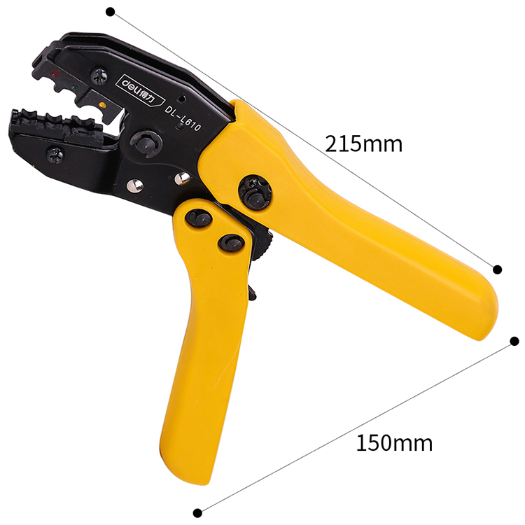 得力壓線鉗冷壓端子多功能DL-L610棘輪壓接鉗,手柄采用PVC包膠,舒適防滑。