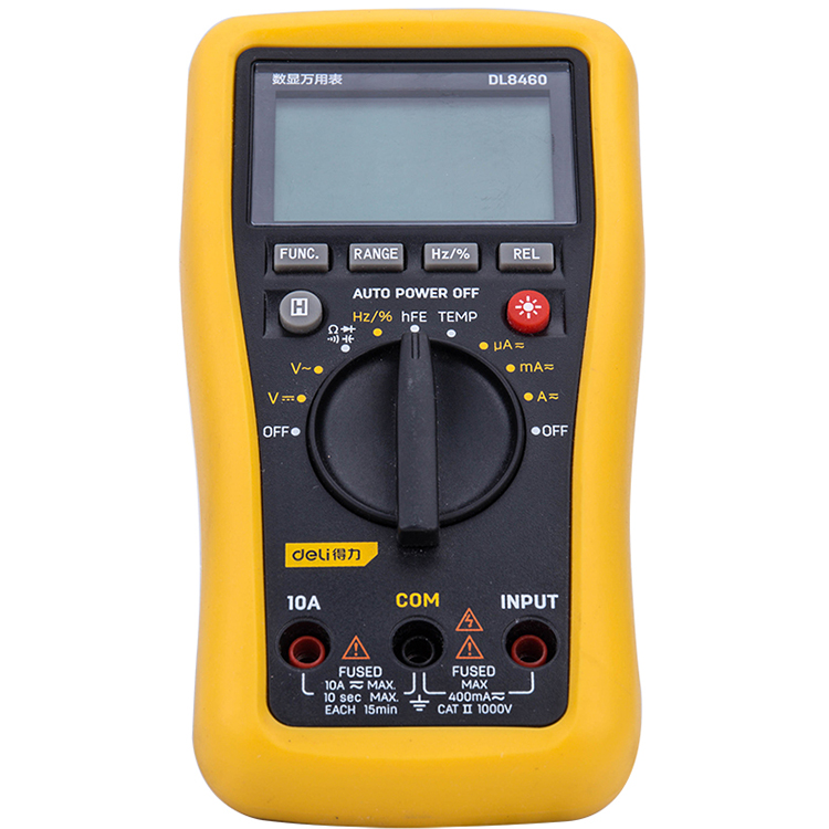 得力數(shù)字萬(wàn)用表DL8460高精度全自動(dòng)小型便攜式,產(chǎn)品可測(cè)電壓、電流、電阻、二極管、三極管、通斷測(cè)試、頻率、占空比、電容、溫度等。