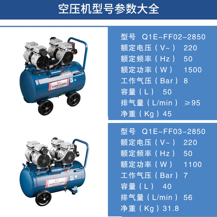 無油靜音空壓機(jī)參數(shù)大全