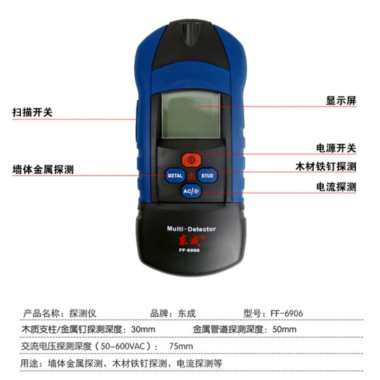 東成多功能探測(cè)儀FF-6906導(dǎo)體木材金屬多功能探測(cè)測(cè)量工具