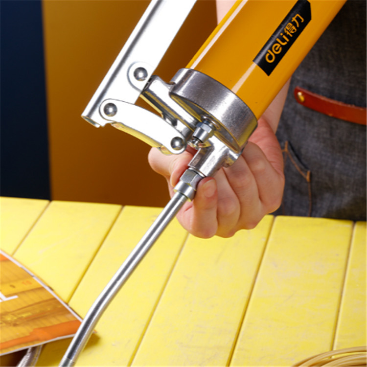 得力黃油槍手動單雙缸重型手壓式高壓小型槍頭采用國標(biāo)鋁合金,耐壓性能提高。