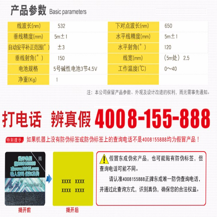 東成綠激光投線儀FF04-41激光線亮度更強,投射距離更遠