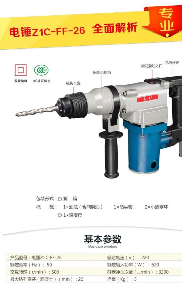 東成Z1C-FF-26電錘沖擊鉆電鉆兩用多功能輕型電錘 基本參數(shù)