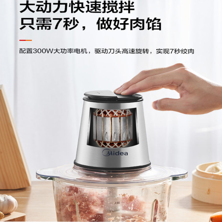 美的(Midea)多功能料理機(jī)大動(dòng)力快速攪拌,只需7秒,做好肉餡。
