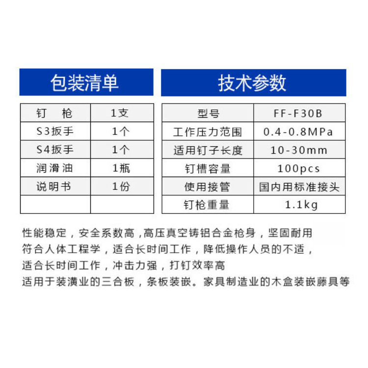 東成氣動(dòng)直釘槍FF-F30B不易卡釘,高速便捷