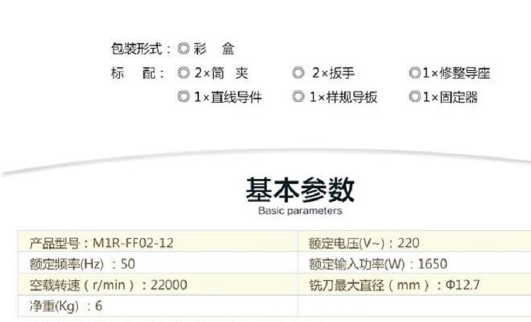 東成 電木銑M1R-FF02-12 電動(dòng)大鑼開槽修邊 木工雕刻機(jī)基本參數(shù)