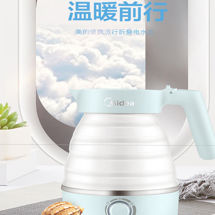 美的折疊電水壺玲瓏嬌軀,折疊更輕盈,為行李箱減負。