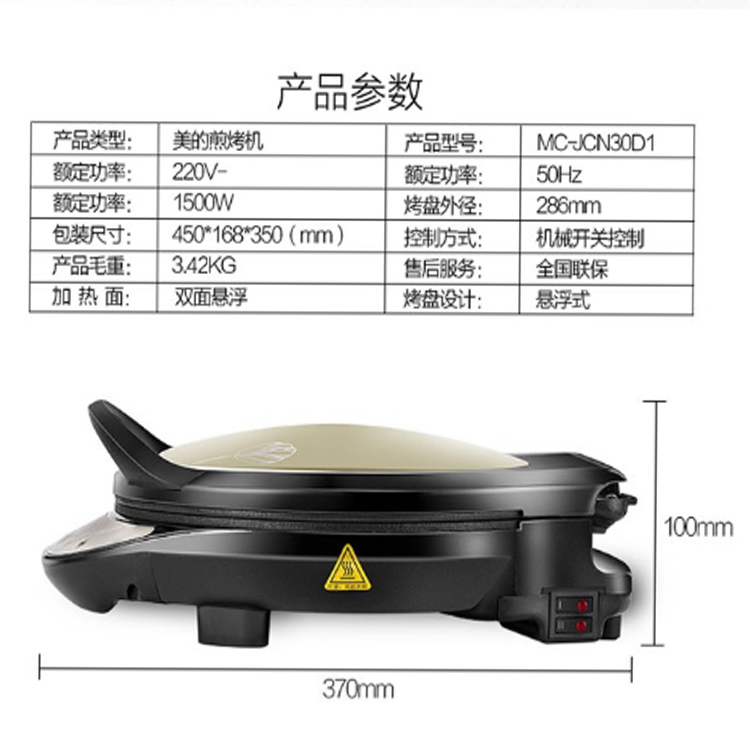 美的(Midea)電餅鐺大火力快速加熱穿透食材,保持食材鮮嫩順滑。