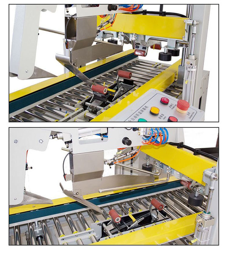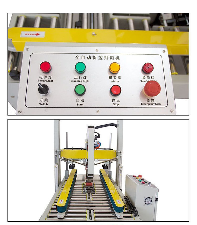 封箱機介紹:自動折蓋封箱機,自動折上蓋,上下自動貼上膠帶,無需人手作業(yè);采用即貼膠帶紙箱封口,封箱效果平整、規(guī)范、美觀,封口更牢固,配套自動化包裝流水線使用將更能體現(xiàn)此機價值,是自動化包裝企業(yè)的首選。