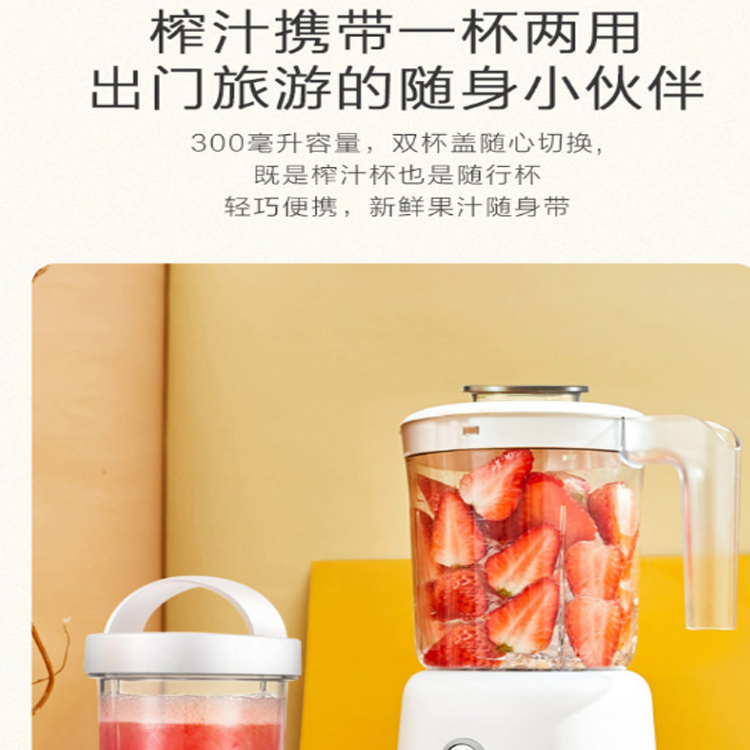 美的(Midea)料理機(jī)300毫升容量,雙杯蓋隨心切換。
