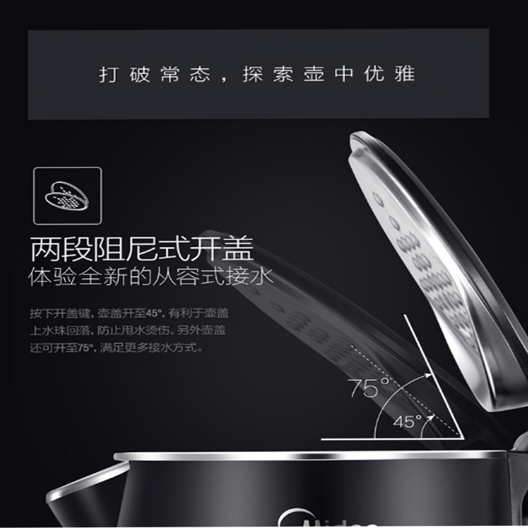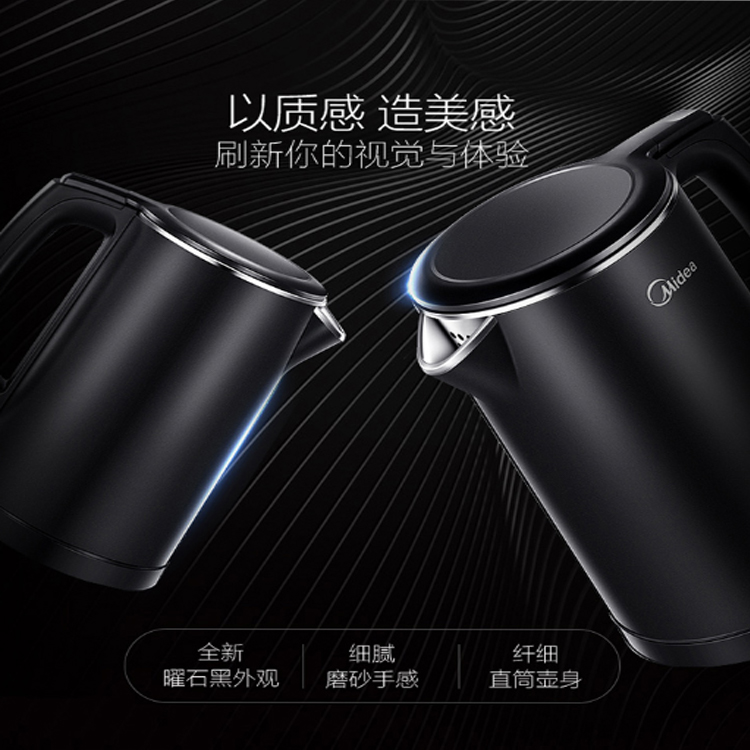 美的(Midea)電水壺內(nèi)膽采用一體化工藝,光潔無(wú)縫易清洗。