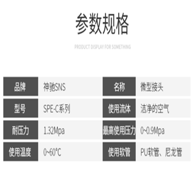 SNS神馳氣動(dòng)SPE-C微型接頭采用優(yōu)質(zhì)接頭材料,品質(zhì)保證