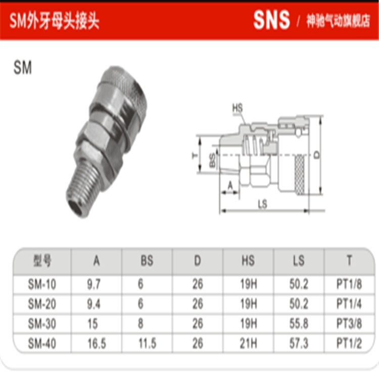 SNS神馳氣動(dòng)C式自鎖快速接頭SM40快插母頭參數(shù)