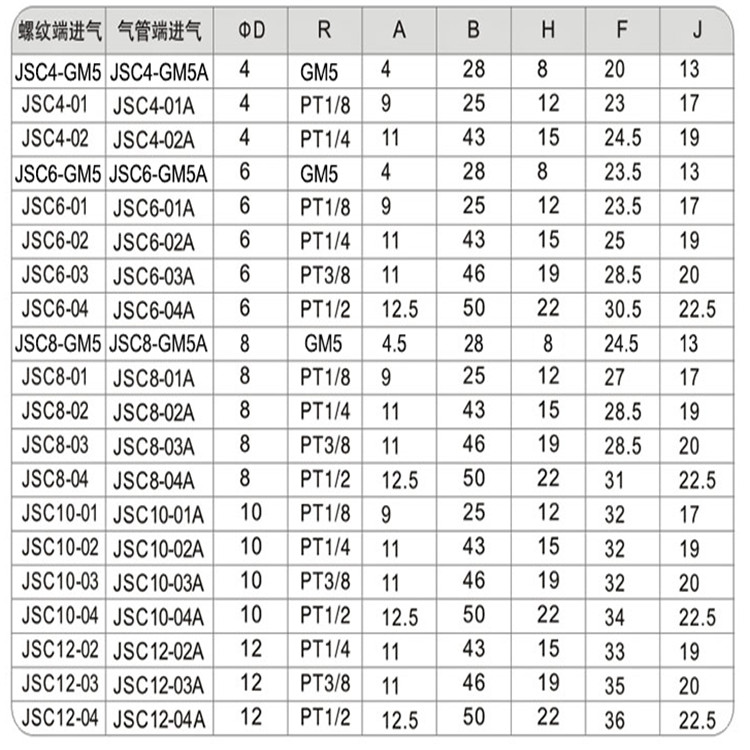 PU氣管節(jié)流閥產(chǎn)品參數(shù)
