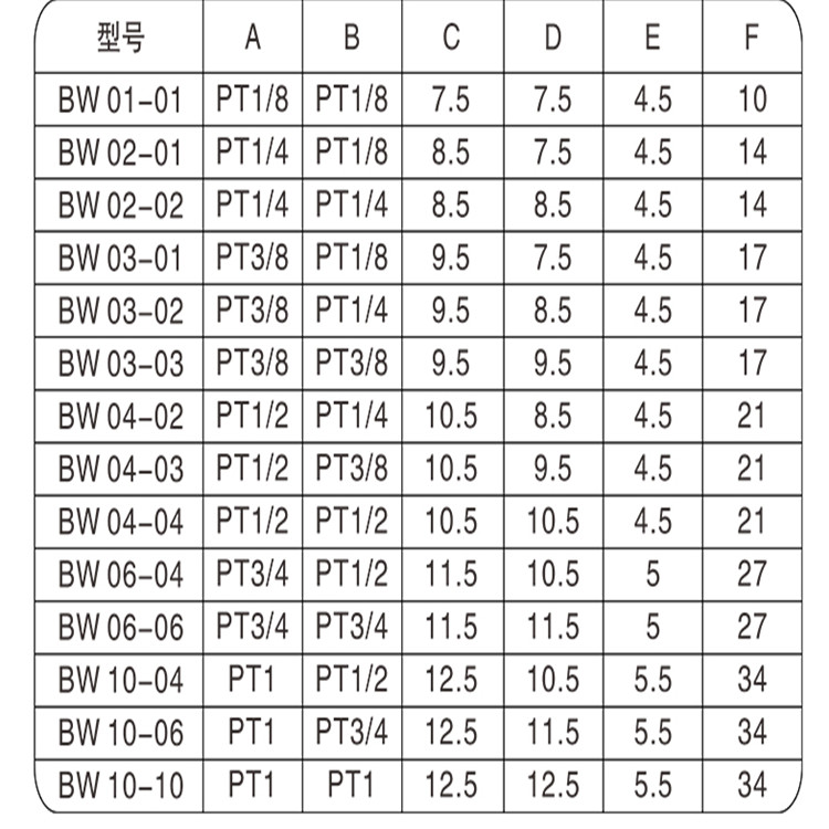 BW銅轉(zhuǎn)接頭產(chǎn)品參數(shù)