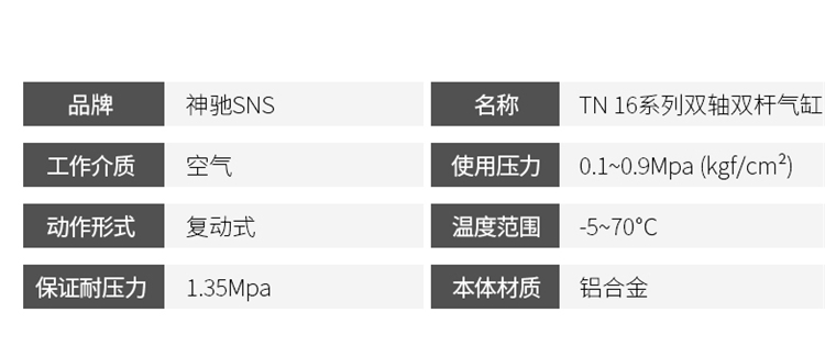 SNS神馳氣動(dòng) TN雙聯(lián)雙軸氣缸 帶磁氣缸夾雙桿