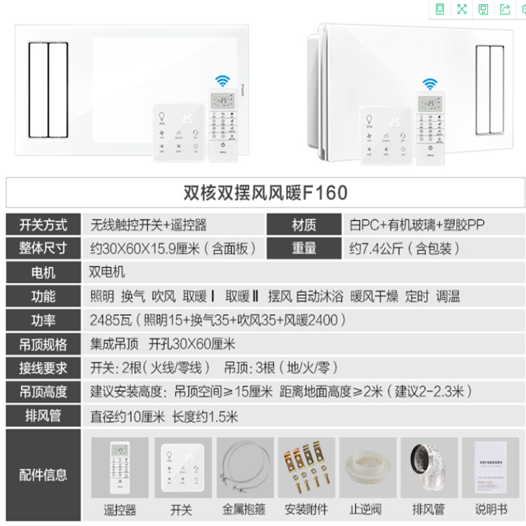 智能恒溫?cái)[風(fēng)風(fēng)暖浴霸 集成吊燈專用 無線操控更方便 F160
