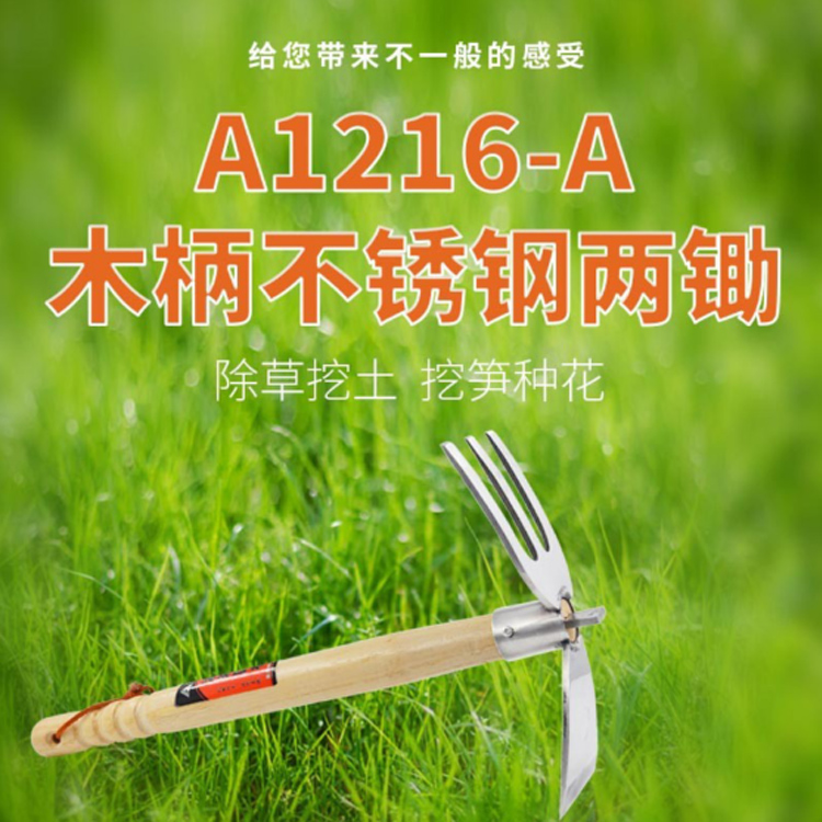 木柄不銹鋼兩鋤輕巧操作,方便好用