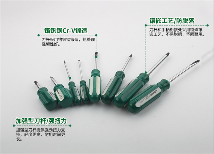 長鹿工具 彩條柄螺絲刀刀桿采用優(yōu)質(zhì)鉻釩鋼鍛造,整體熱處理,硬度高,堅固耐
