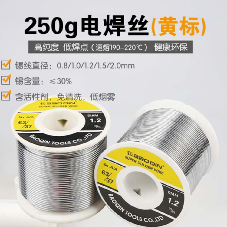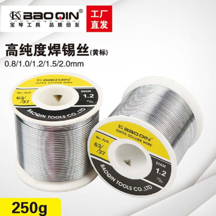 寶琴250g焊錫絲,高效焊接,安全實(shí)用,焊點(diǎn)光亮,免清洗,焊后離子污染低。