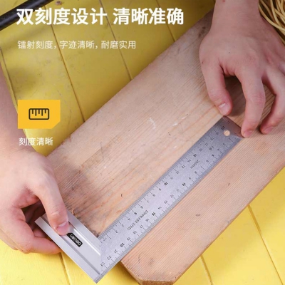 角尺雙刻度設(shè)計(jì),清晰準(zhǔn)確,鐳射刻度,字跡清晰,耐磨實(shí)用