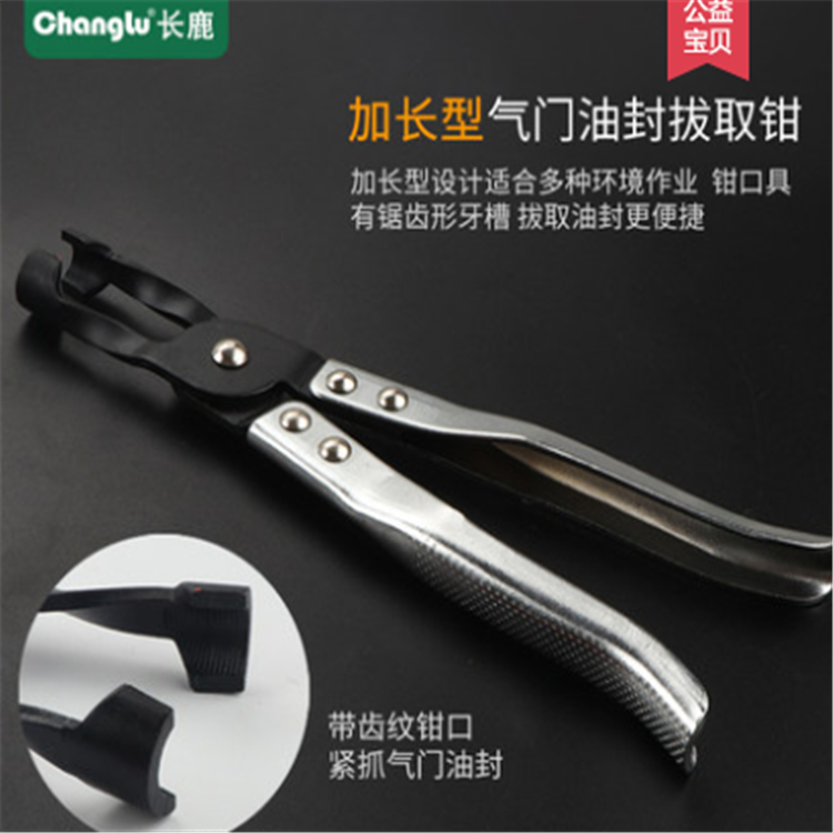 長(zhǎng)鹿油封接頭套筒加長(zhǎng)型氣門油封拔取鉗,加長(zhǎng)型設(shè)計(jì),適合多種環(huán)境作業(yè),鉗口具