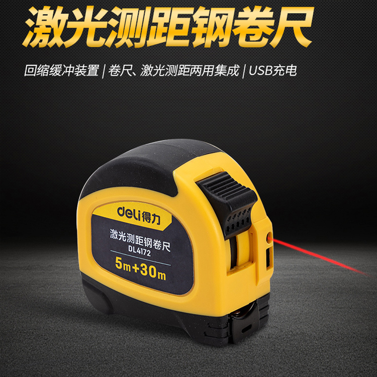 得力激光測距鋼卷尺5米高精度鋼卷尺30米激光測距伸縮尺測距儀