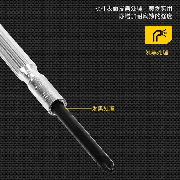 螺絲批批桿表面發(fā)黑處理,美觀實用,亦增加耐腐蝕的強度