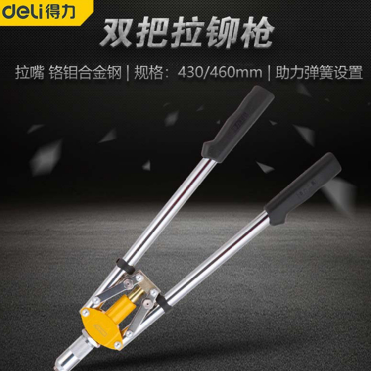 得力雙把拉鉚槍,高強度復(fù)位彈簧設(shè)計,可隨意跳動拉釘時的力度,使用壽命長。