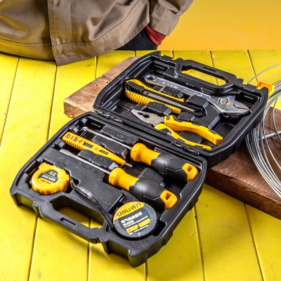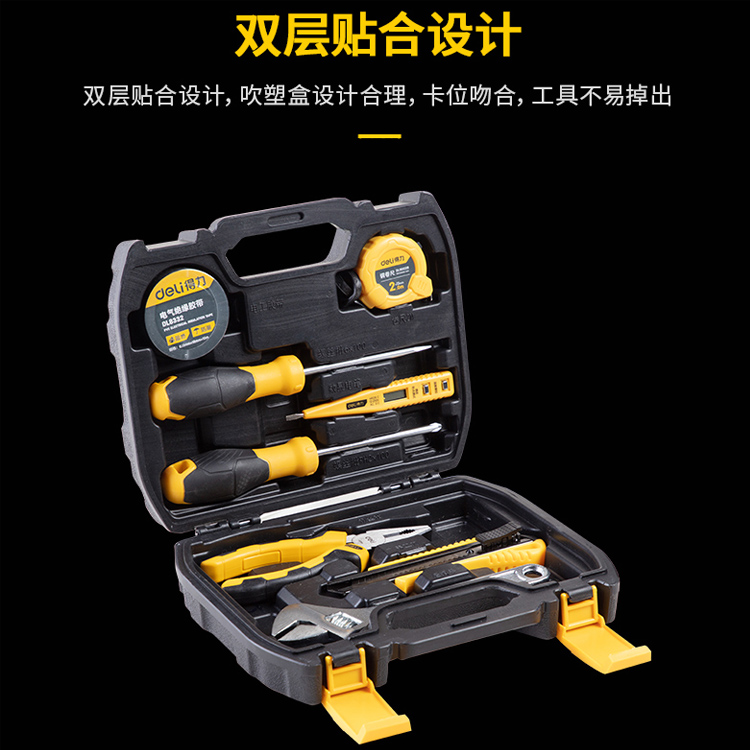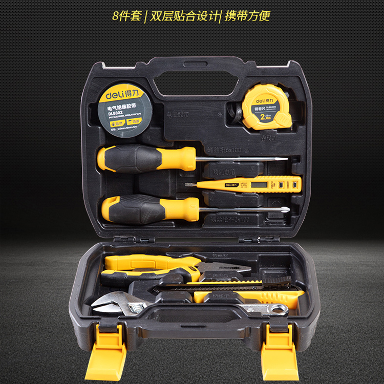得力工具8件綜合維修組套五金工具箱多功能套裝