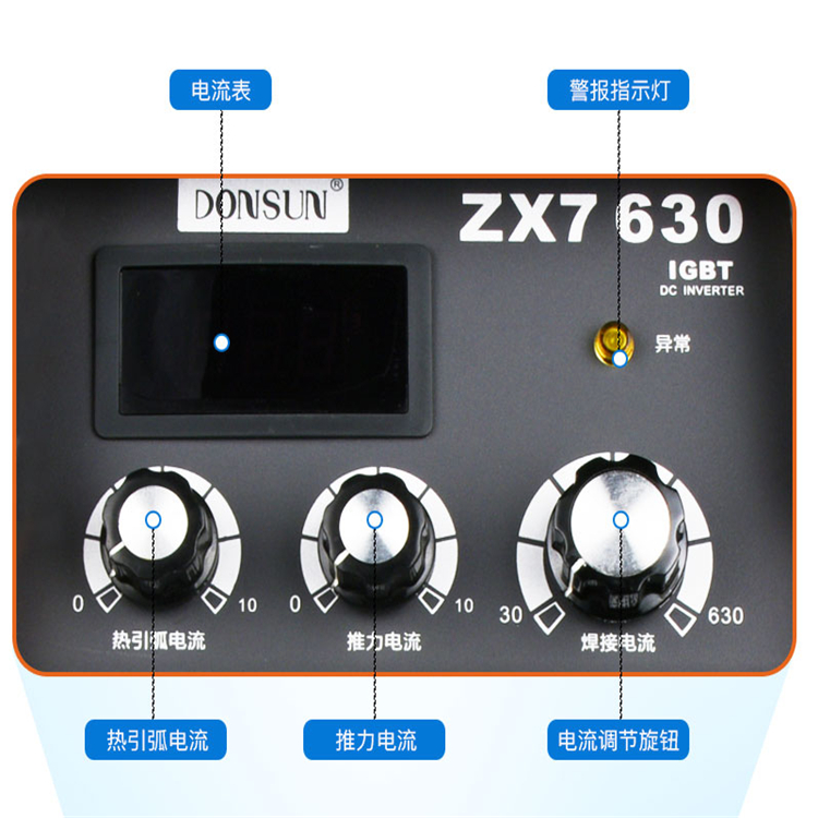 調(diào)節(jié),不易黏條,晚焊接,熱起弧調(diào)節(jié),滿足焊工焊接需求。- 型號(hào)名稱ZX7-630I(標(biāo)配)