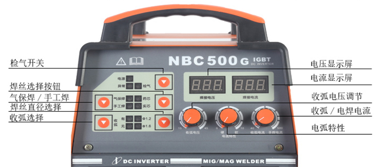 上海東升二保焊機(jī)nbc-350G/500G二氧化碳?xì)獗:笝C(jī)通用直流電焊機(jī)控制面板操作