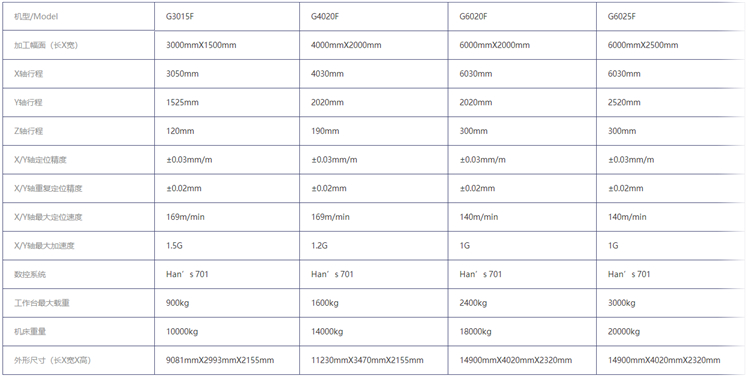 大族激光F-Tiger系列激光切割機(jī)技術(shù)參數(shù)