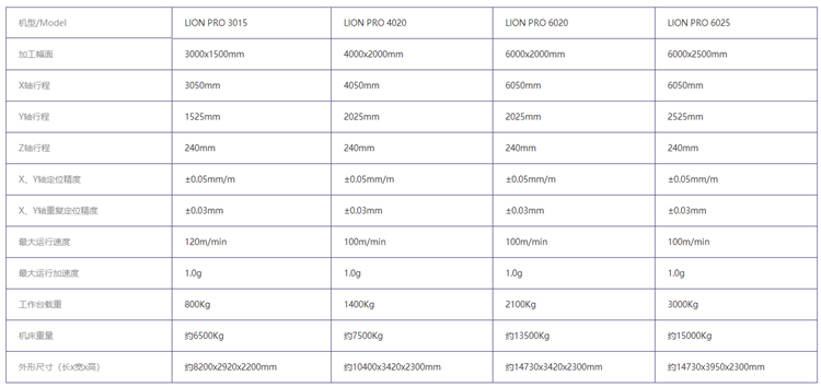 大族激光LION PRO 3015光纖激光切割機(jī)技術(shù)參數(shù)圖