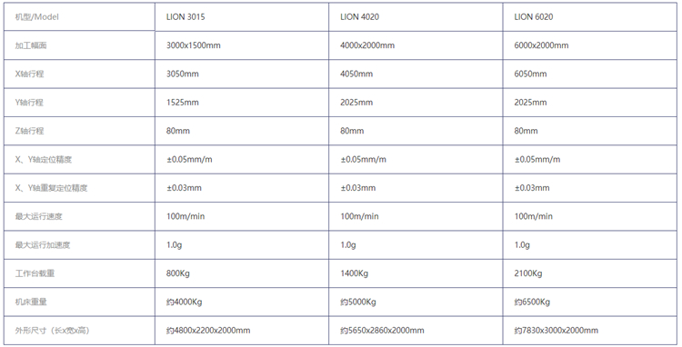 大族激光LION 3015激光切割機(jī)技術(shù)參數(shù)圖