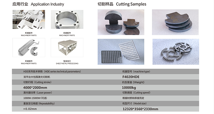 F4020HDE激光切割機(jī)Z軸行程100mm,上下臺(tái)面工件切割精度一致。
