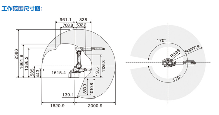 風云機器人六關節(jié)焊機機器人 FYH10工作范圍尺寸圖