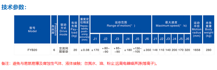 風(fēng)云機(jī)器人六關(guān)節(jié)機(jī)器人 FYB20工作空間大、性能穩(wěn)定、運(yùn)行速度快 、通用性能