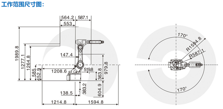 風(fēng)云機(jī)器人六關(guān)節(jié)機(jī)器人 FYB20工作范圍尺寸圖