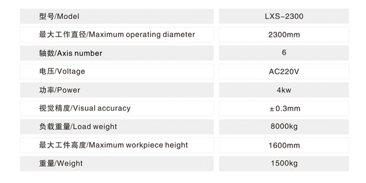 - 型號名稱激光視覺智能螺旋焊機機器人?LXS-2300