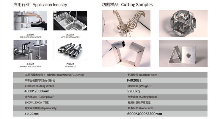 F4020BE 板管一體激光切割機(jī),可用于不銹鋼、碳鋼、不銹鋼、