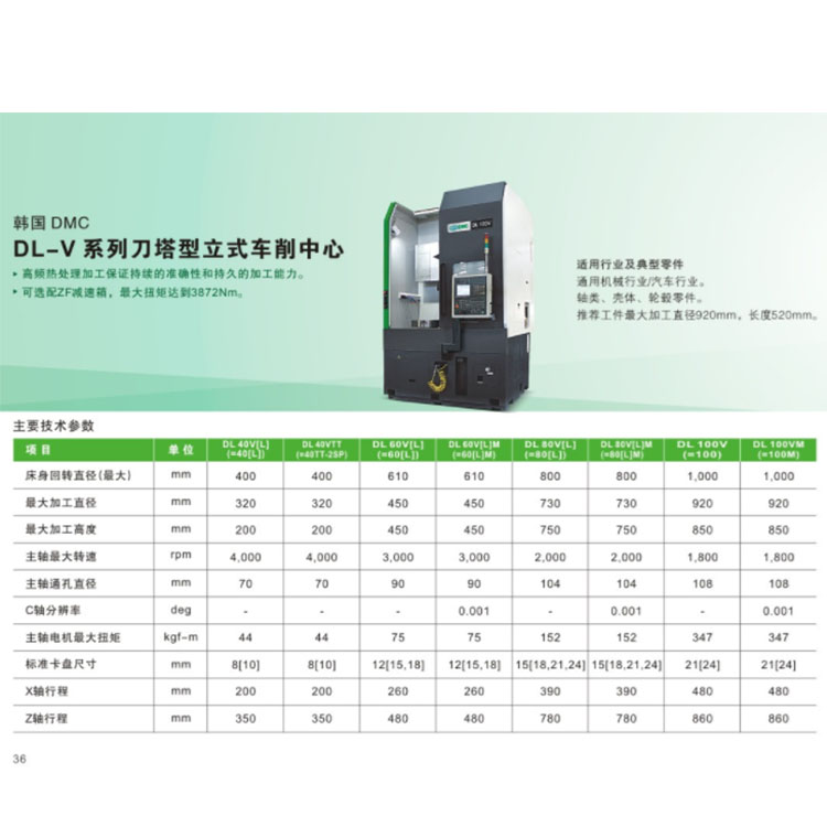 友佳韓國(guó)DMC DL-V系列刀塔型立式車削中心