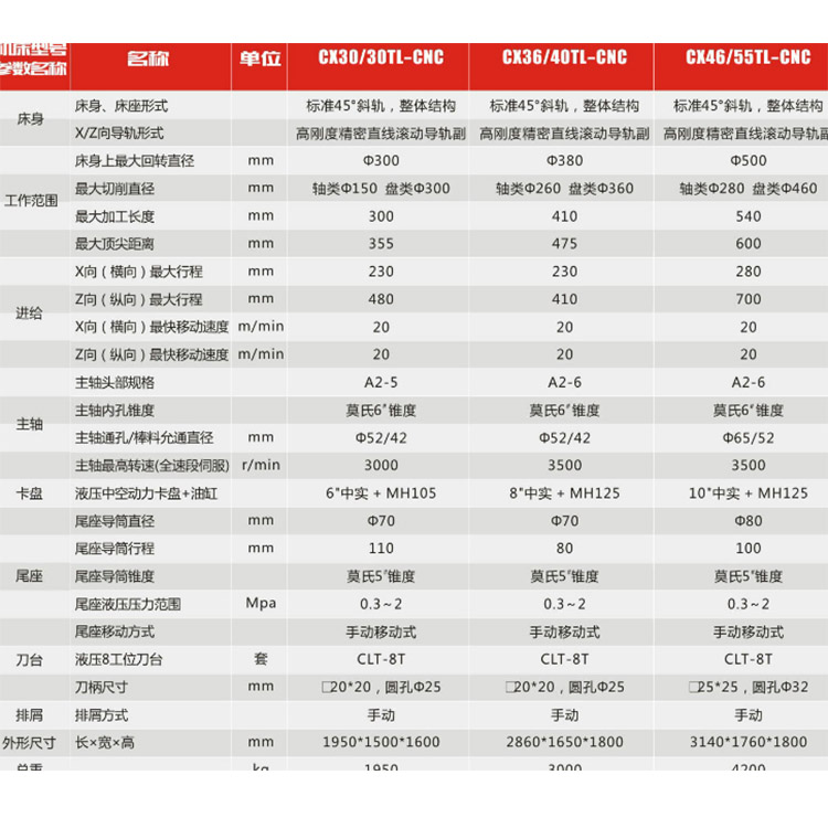 數控斜床身 線軌 CX-300PL-CNC由于配置發(fā)那科、西門子等數控系統(tǒng),床身為45°斜式結構,