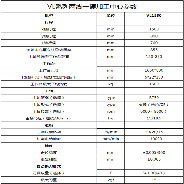 雅力士精機(jī)VL1580兩線一硬加工中心參數(shù)