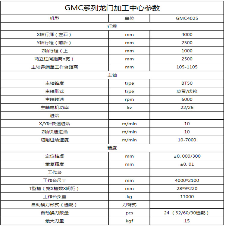 雅力士精機龍門加工中心GMC4025立柱與橫梁為一體式結構,整體全箱型肋骨設計,強化機械剛性,有效的抑制加工所產生的震動