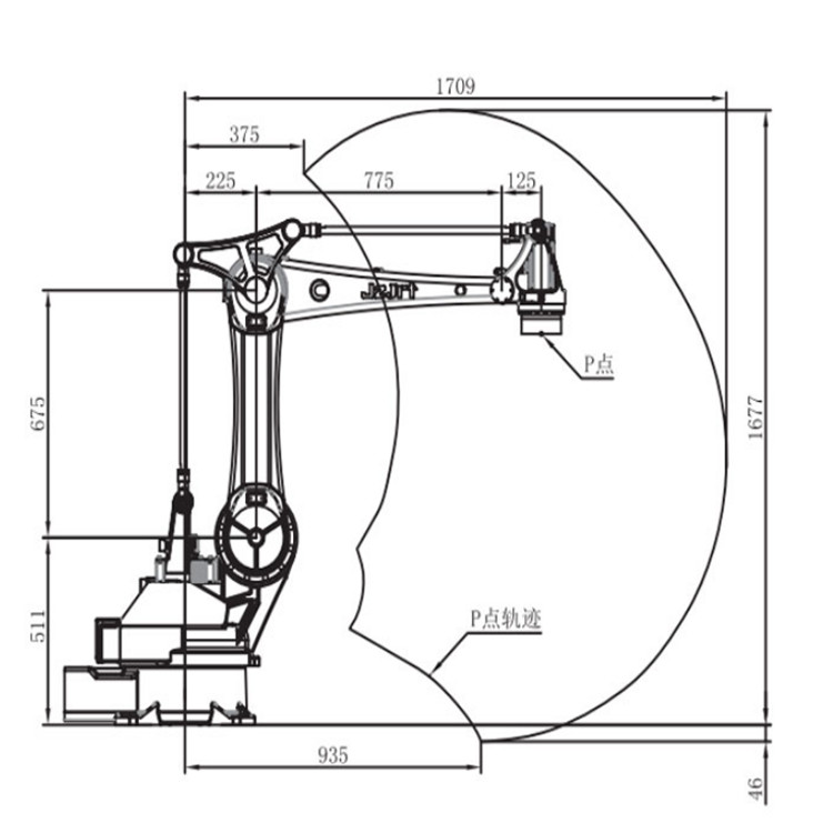 九眾九機(jī)器人載荷25kg臂展1800mm四軸沖壓機(jī)器人產(chǎn)品尺寸