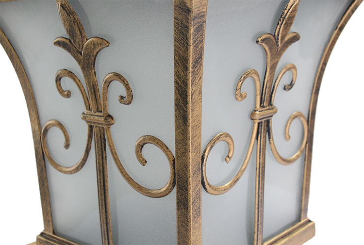 復古庭院燈壓鑄鋁結實穩(wěn)固/經多層噴漆打磨。