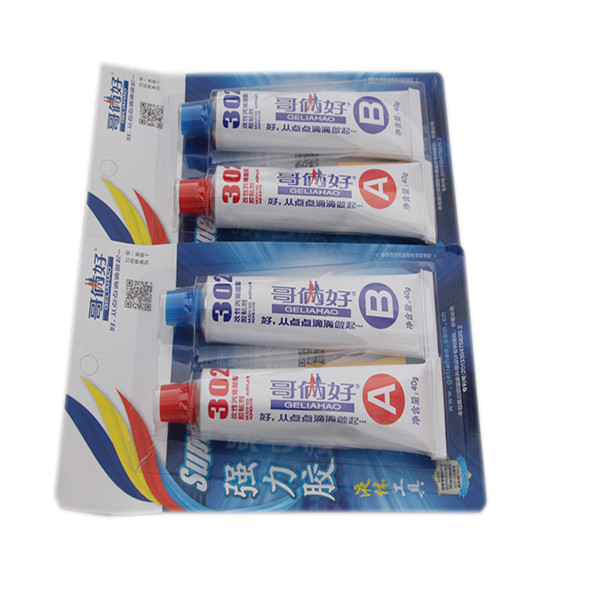產品型號 302 溫度范圍 -60攝氏度~100攝氏度 定位時間 5-10分鐘 凈含量 40g*2 保質期 一年(常溫下陰涼干燥處) 固化時間 充分固化需24小時 粘結強度 18Mpa - 型號名稱302