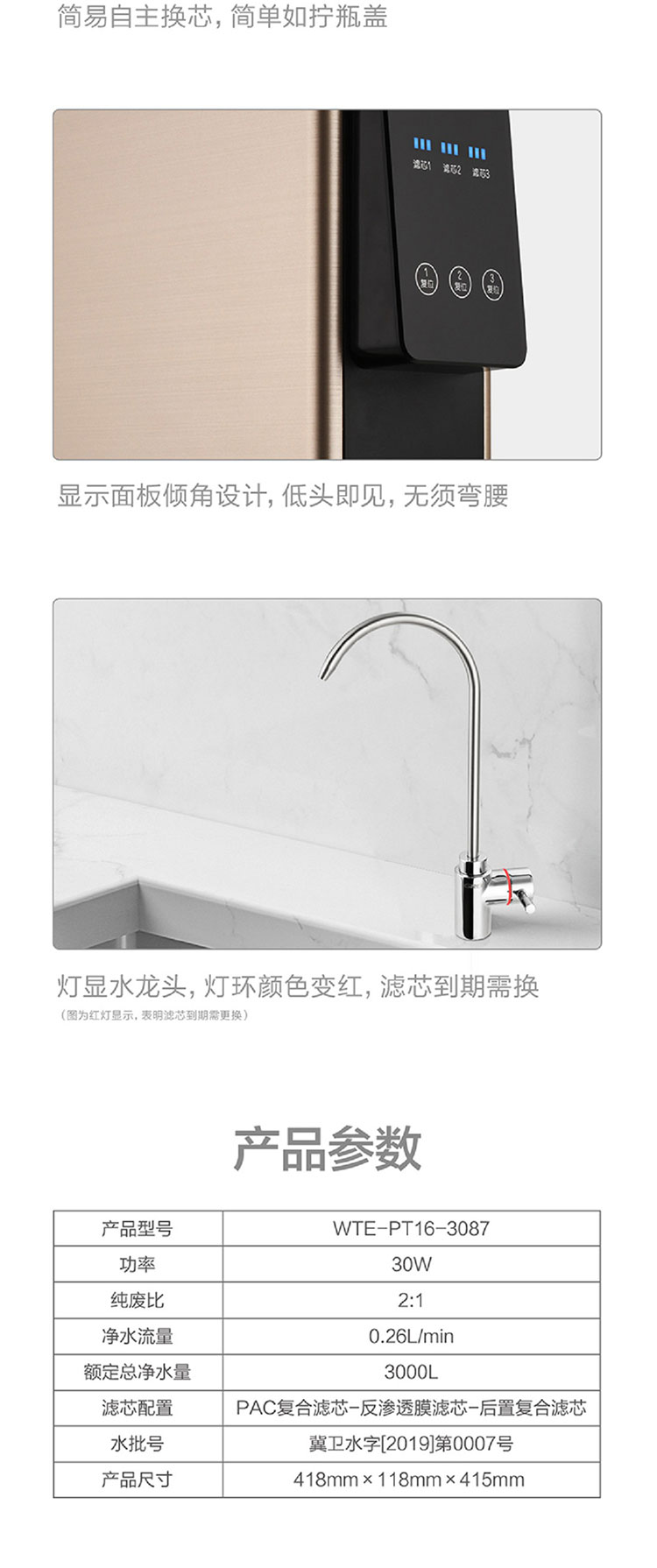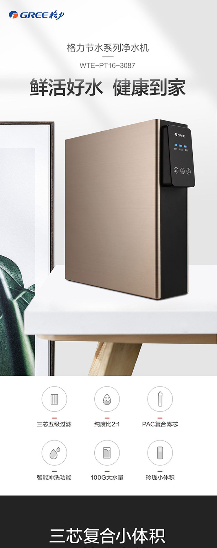 格力凈水器家用直飲廚房自來水過濾器反滲透凈水機(jī)WTE-PT16-3087